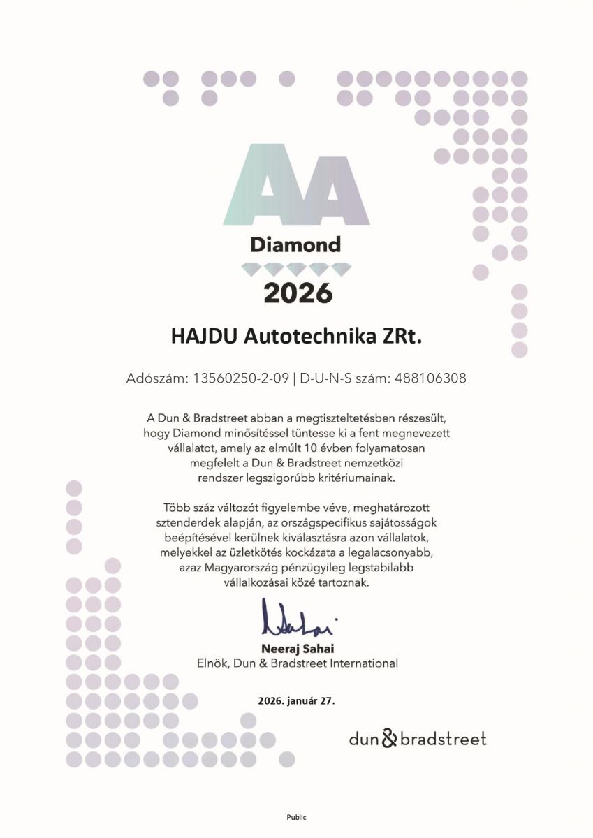 AAA pénzügyi minősítés, GOLD (Bisnode) 2019